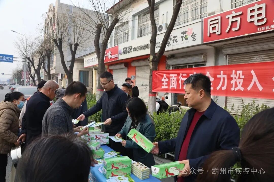 2026年3月24日是第31个“世界防治结核病日”,今年的宣传主题是“全民行动 全力投入 全民参与 终结结核”,旨在深入贯彻党的二十大精神,践行“人民至上,生命至上”的理念,倡导各级政府、各部门、各单位和百千万结核病宣传志愿者积极行动起来,动员社会各界广泛参与,形成全民防治结核病的强大合力,为实现终结结核目标共同努力。为进一步动员有关部门及全社会共同参与结核病防治工作,24日上午,由霸州市卫健局,霸州市疾控中心,廊坊市第四人民医院联合主办的世界防治结核病日大型宣传活动,在霸州市疾控中心门前成功举办。霸州市卫健局党组成员、市疾控中心党总支书记邱国伟,市卫健局副局长田丽萍,市卫健局疾控科科长曹维娜,市疾控中心副主任张法东,廊坊市第四人民医院结核科主任陶子君,以及市卫健局宣传科、市疾控中心结防股、宣传股工作人员和结核病防治宣传志愿者等共18人参加本次宣传活动。宣传活动中张贴内容为“全民行动 全力投入 全民参与 终结结核”标语一幅,四院结核病门诊为现场10余人进行义诊,现场发放宣传画30余张,宣传扑克100余副,结核病防治知识笔记本160余本,结核病防治知识宣传册160余份,口罩200只,同时在霸州海悦广场利用大型电子屏幕滚动播放结核病防治知识。3.24世界防治结核病日现场活动圆满举行为2026年霸州市结核病防治工作拉开了帷幕,霸州市防痨人始终将“生命至上,人民至上,终结结核”作为目标,奋战在一线!
