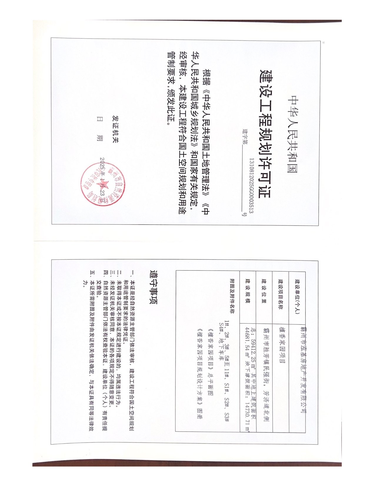 檀香家园项目工程规划许可