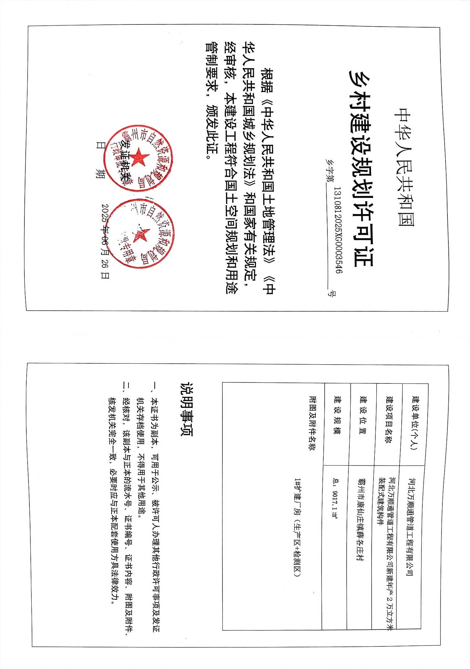 万顺通乡村建设规划许可证