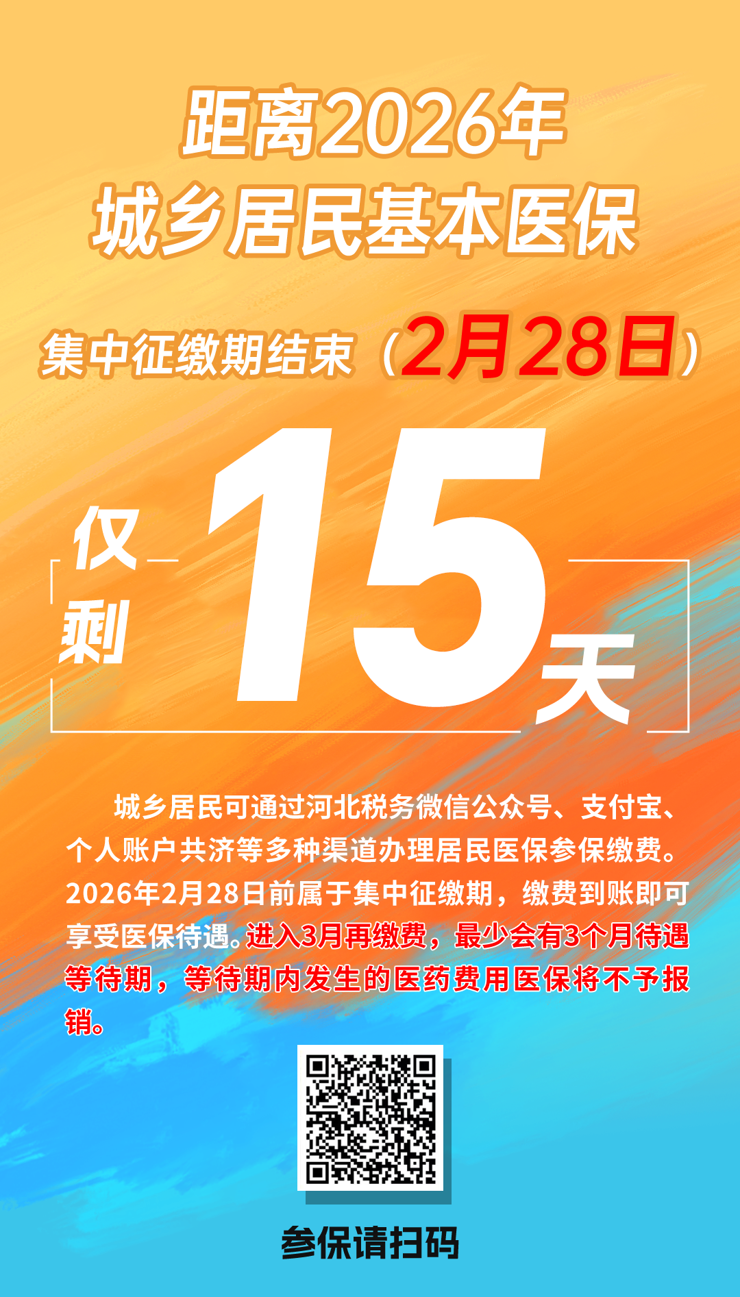 2026年河北省城乡居民医保集中缴费仅剩15天