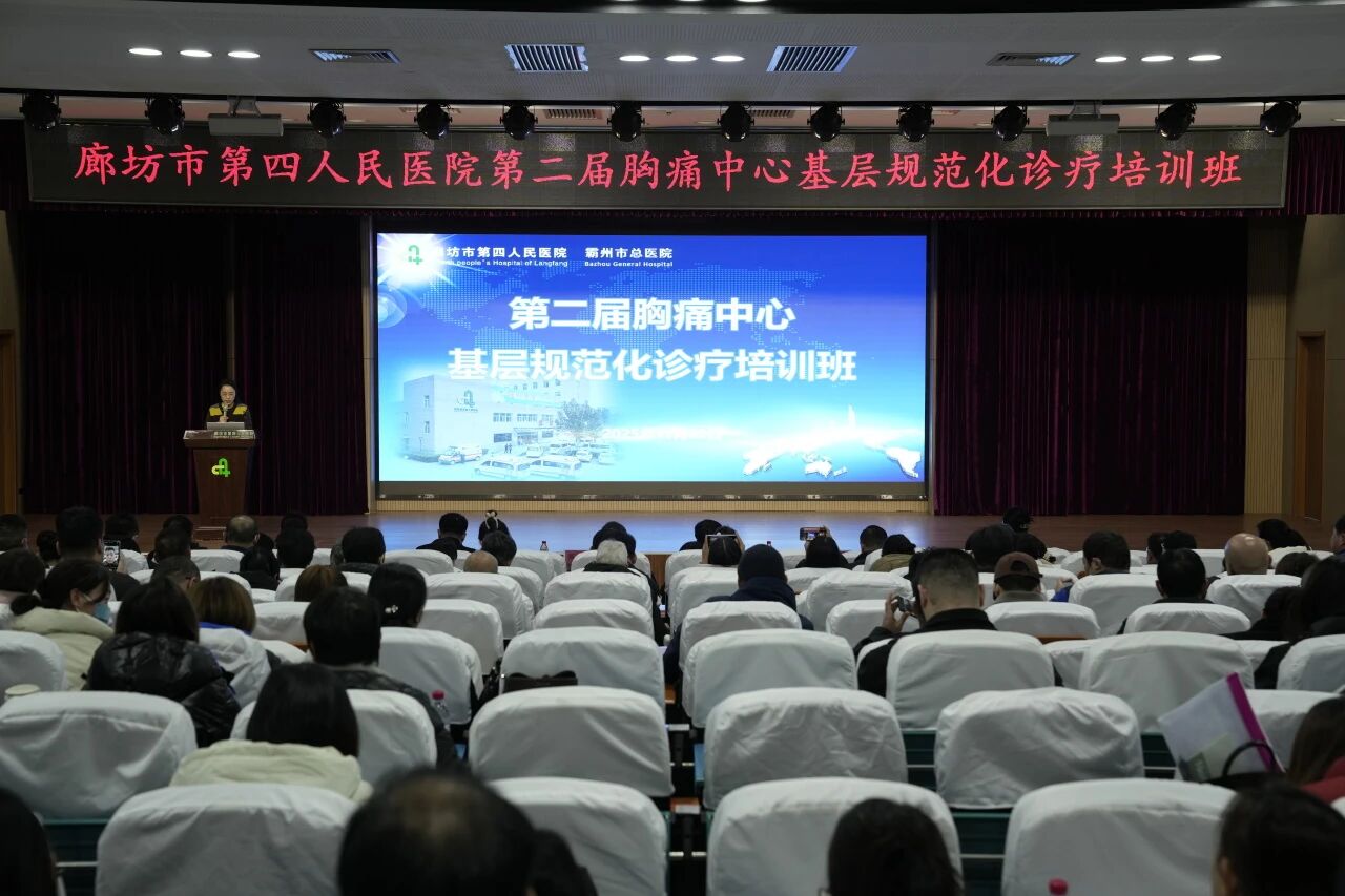 为筑牢生命防线、赋能基层诊疗,强化基层胸痛救治体系建设,提升基层医务人员对胸痛相关疾病的早期识别、快速评估及规范化诊疗能力,破解基层胸痛疾病诊疗“早识别难、快处置难、强联动难”的痛点问题,降低急性心肌梗死、主动脉夹层、肺栓塞等致命性胸痛疾病的死亡率与致残率,11月22日,廊坊市第四人民医院成功举办“第二届胸痛中心基层规范化诊疗培训班”。会议旨在搭建基层胸痛诊疗交流平台,统一诊疗标准、优化救治流程,推动胸痛救治资源下沉,筑牢基层胸痛救治第一道防线,为群众提供更高效、精准、连续的胸痛救治服务。廊坊市第四人民医院副院长、心内一科主任李令娟为此次会议项目负责人,刘冬副主任医师任项目主持人。廊坊市第四人民医院院长王继华在致辞中指出,胸痛救治关乎生命安危,基层是胸痛救治的“第一道防线”。廊坊市第四人民医院作为区域医疗中心,将持续发挥技术引领与资源辐射作用,通过常态化开展基层培训、搭建学术交流平台、完善上下联动机制,推动全市基层胸痛诊疗能力同质化提升,让群众在家门口就能享受到高效、优质的急诊救治服务,为守护区域群众心血管健康筑牢坚实屏障。河北医科大学第一医院甄宇治教授讲授冠脉旋磨术中常见并发症预防及处理,强调术前风险评估、术中操作规范及术后监测对降低并发症发生率、保障手术安全的关键意义。北京安贞医院高杰教授就急性心肌梗死合并多支病变的处理策略展开深入讲解,让基层医务人员系统掌握“优先血运重建”“分步治疗”等不同方案的适用场景与实施要点。北京同仁医院罗斌教授围绕宽QRS波心动过速的鉴别进行细致授课,帮助参训人员清晰区分不同类型心动过速的心电图特征与鉴别流程。天津市第一中心医院陈炳伟教授讲授起搏器的常见并发症,强调术前适应证评估、术中操作精准度把控及术后定期随访监测对减少电极脱位、感染、心律失常等并发症发生、保障患者治疗安全的重要作用。廊坊市第四人民医院心内二科主任王鹏、副主任赵唯唯,心内一科主任李令娟与教授们展开精彩的讨论。廊坊市第四人民医院李令娟主任医师、梁锁柱副主任医师、张海涛副主任医师、滑俊峰副主任护师,分别就急性心肌梗死的相关处理、胸痛的鉴别诊断及ACS的治疗原则、心力衰竭的药物治疗、心内科常见急危重症的护理等主题倾囊相授,分享诊疗经验。本次培训班紧扣基层临床需求,内容兼具专业性与实用性,现场氛围热烈,学员们认真聆听、积极互动,就临床工作中遇到的疑难问题与专家展开深入交流。大家纷纷表示,本次培训内容精准对接基层需求,既有前沿理论指导,又有实操经验分享,有效填补了基层医务人员在胸痛诊疗领域的知识空白,对规范诊疗行为、优化救治流程、降低患者死亡率具有重要指导意义。